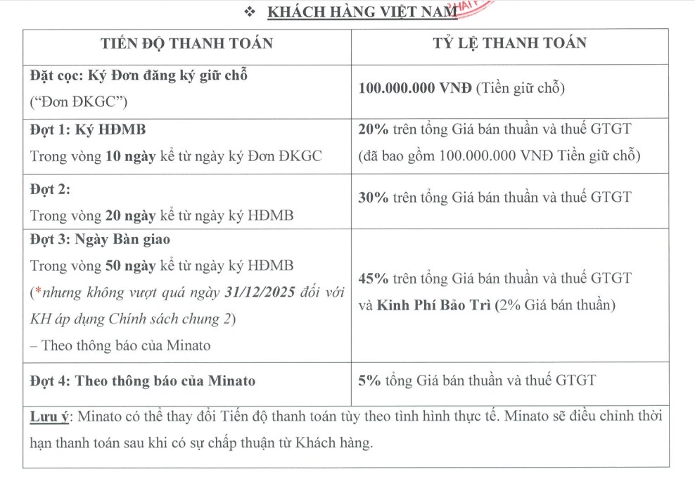 Giá bán Căn hộ The Minato Hải Phòng linh hoạt